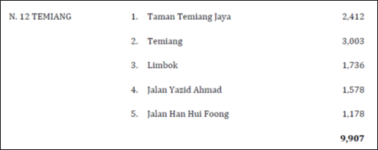 Figure 1: Taman Temiang polling station with 2994 voters in N12 Temiang under the P128 Seremban parliament seat