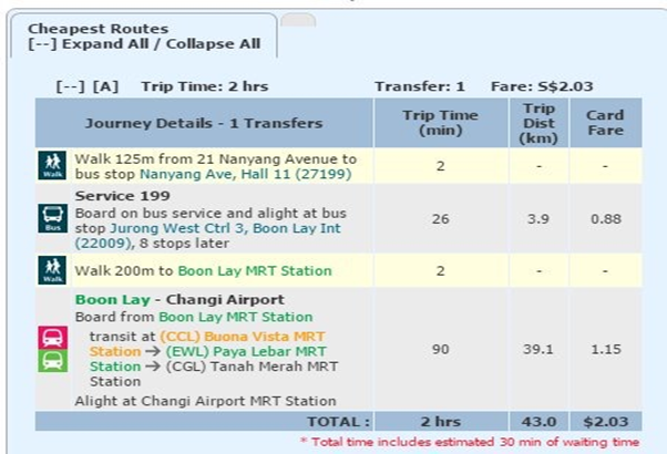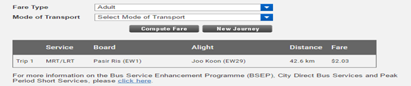 To compare, we can look across the border to Singapore. The MRT is FREE on weekdays for travel before 7.45am in order to decrease congestion during the peak travel time which is between 8am and 9am.[4] A trip from the first MRT station in the east – Pasir Ris (E1) – to the last MRT station in the west – Joo Koon (E29) – which covers a distance of 42.6km only costs SGD 2.03.