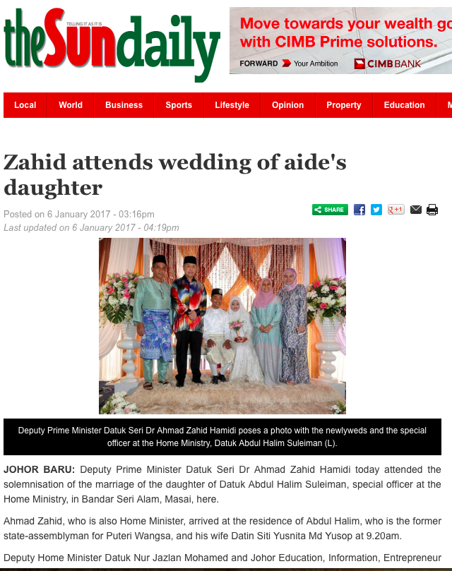 Further investigation revealed that he is Special Officer to Home Minister-cum-Deputy Prime Minister, Ahmad Zahid Hamidi. The last public record stating him as being Special Officer to Home Minister was on 6 January 2017. (Attachment 3)
