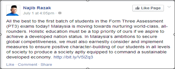 On the 1st of July, Prime Minister Dato Seri Najib Tun Razak posted on his facebook the following message.