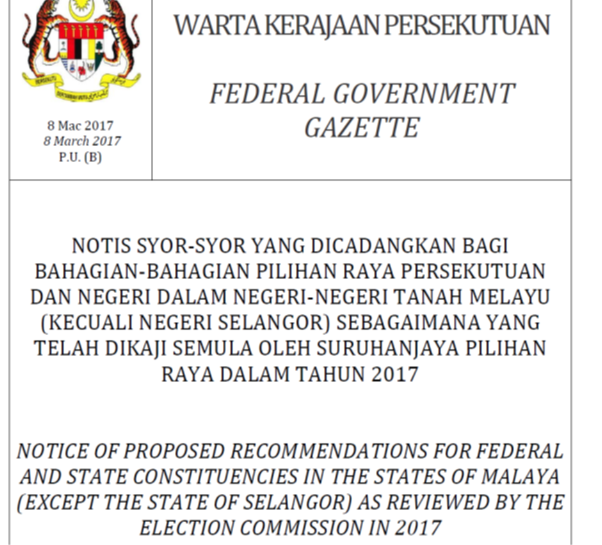 Yesterday, on the 8th of March, 2017, the Election Commission (EC) published a notice to announce the official start of the 2nd round of the public display for the 2016 constituency delimitation exercise. This announcement was published in the mainstream press and as a Federal Government Gazette. This move by the EC is unprecedented in the history of delimitation exercises in Malaysia because it excludes the parliament and state seats in the state of Selangor in the 2nd public display. This move is also highly questionable and very likely, unconstitutional.