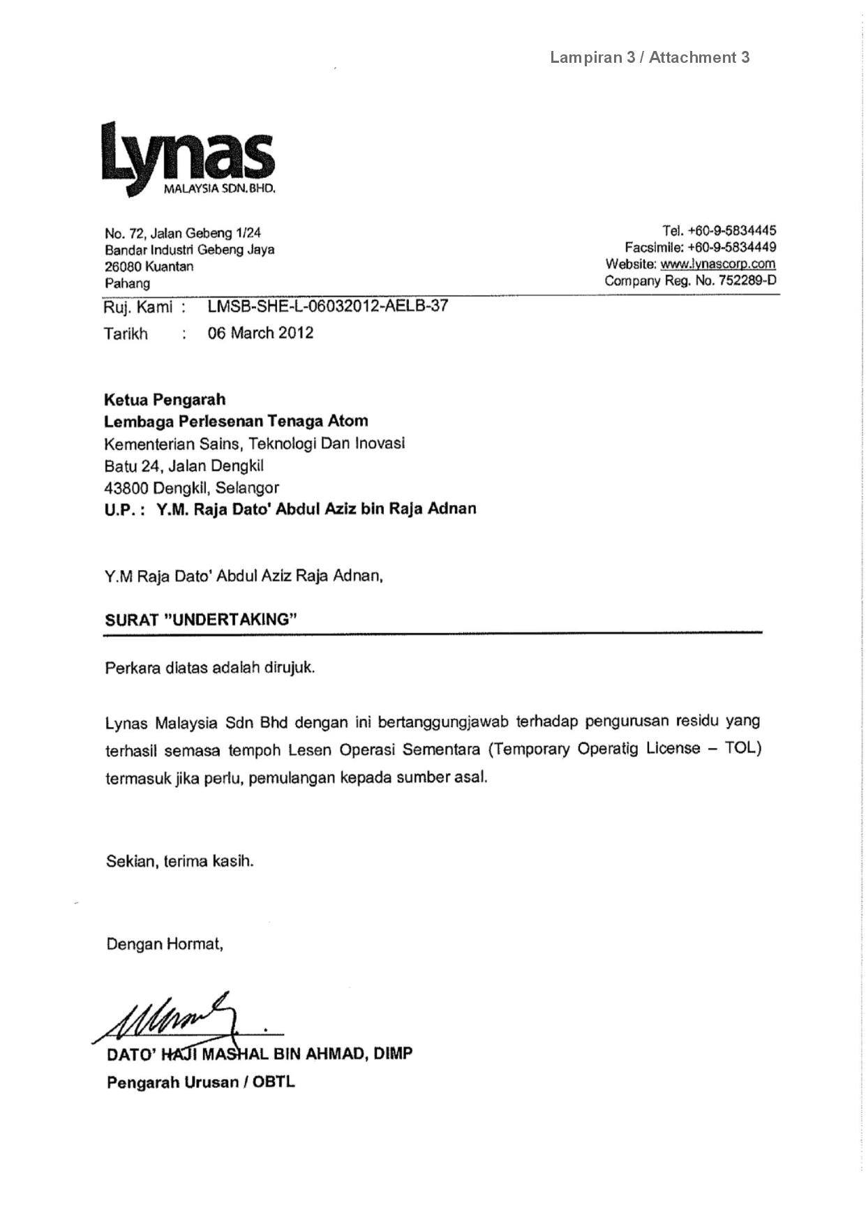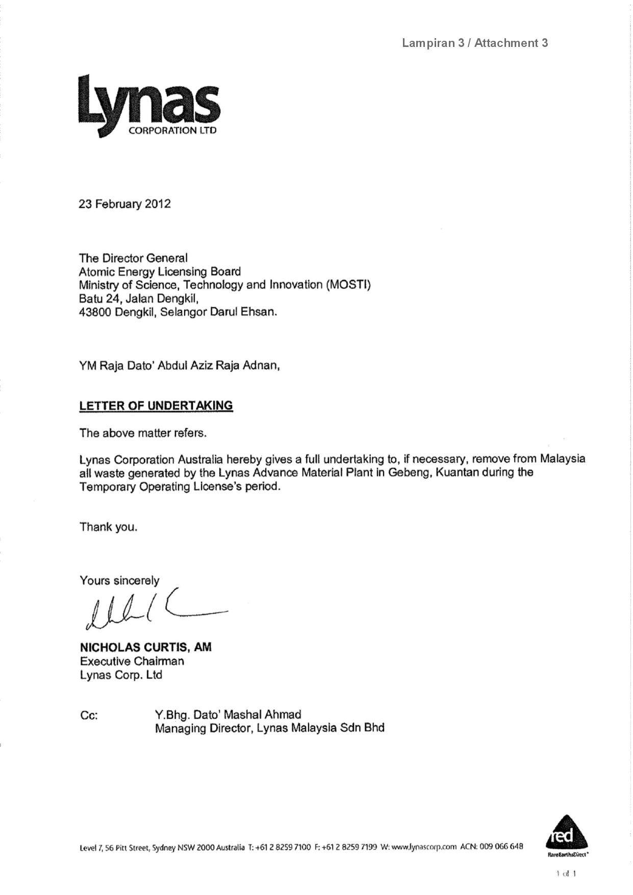 About four years ago, we imposed a pre-condition for Lynas license renewal to remove its radioactive waste from Malaysia according to its TWO letters of undertaking to the government of Malaysia in 2012 (letters of undertaking 1 & 2).