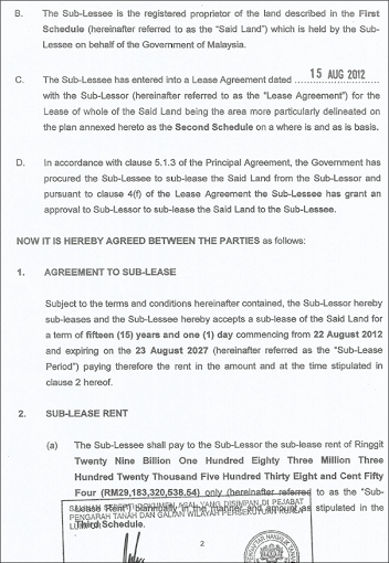The rental from the FLC to PFI are spread out into 30 payments over 15 years starting from the 15th of February 2013 all the way up to the 13th of August 2027. The total rental payments add up to RM29.2 billion. (See Appendix 2)