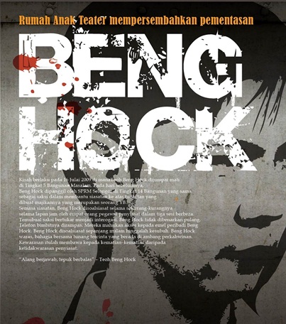 “Sebelum ini Rumah Anak Teater ada mengarahkan pelbagai jenis bentuk persembahan seperti kisah benar tentang kes pembuangan bayi,” katanya, menambah bahawa teater Beng Hock akan dipentaskan dalam Bahasa Melayu sebagai bahasa kebangsaan yang boleh difahami ramai.